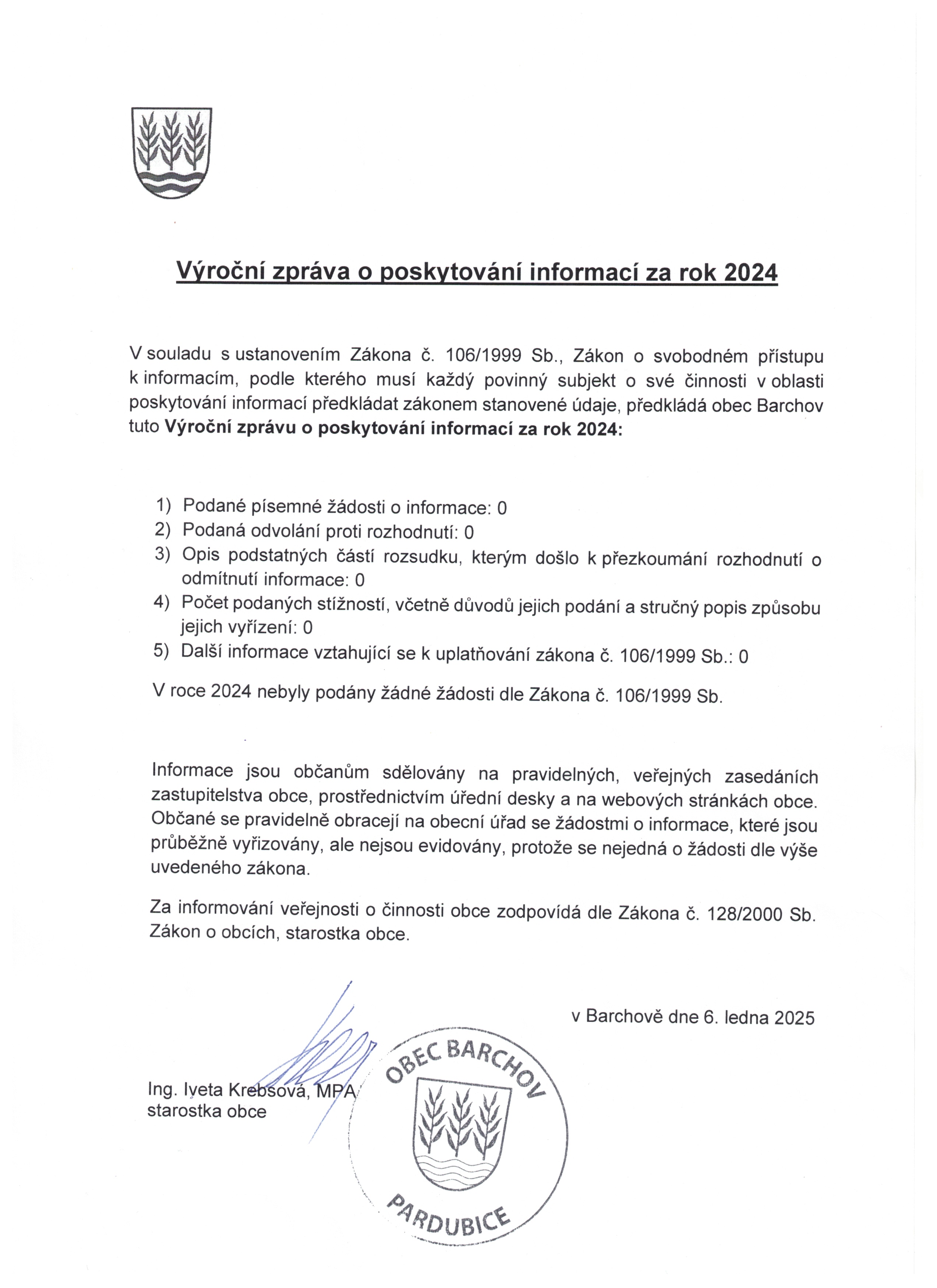 Výroční zpráva obsahuje další informace vztahující se k uplatňování zákona o svobodném přístupu k informacím